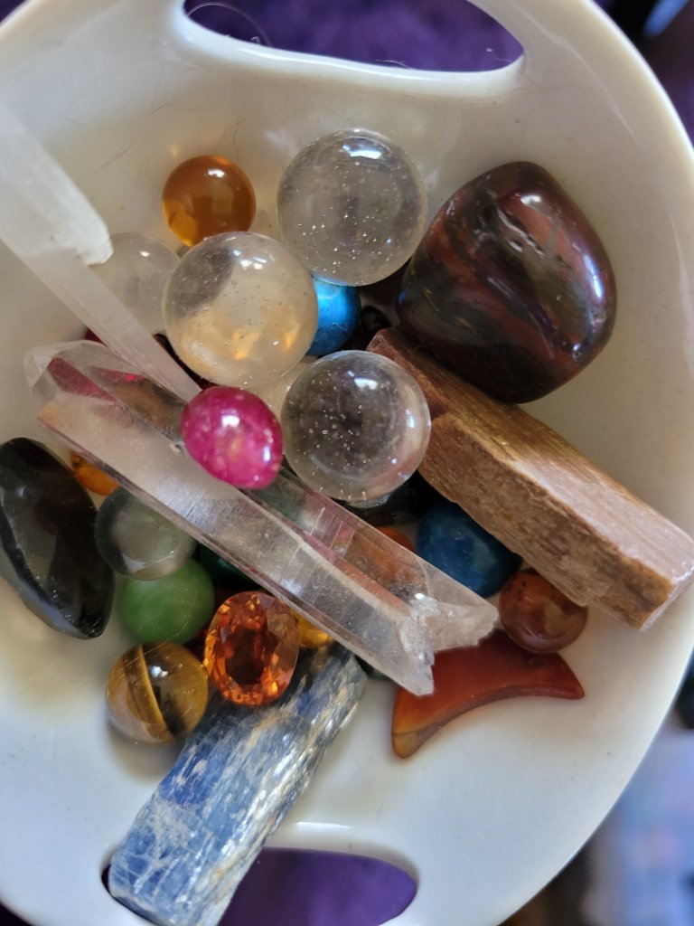 Before you go add to your collection with a spending spree with a good shop on Etsy, go over what you already have. Don’t forget to look at your jewelry! Diamonds, rubies, emeralds, pearls, amethyst, citrine, topaz, opal, jade, coral, and tons more are all used in jewelry. Points, spheres, cut pieces, hearts and that cute carved bear your grandmother got you that one time… they all count! Pay attention to what’s in your home already: you have rocks and crystals and gems all around you. Make a list, even if it’s just “wow, turns out those candle holders are marble!”
