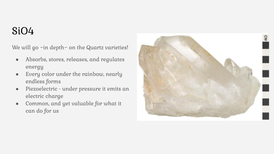 The odds are good that you have SiO4 in your collection already. The second most common mineral on the planet, Quartz is ubiquitous. It’s a gemstone, has applications in industry, and has been made into countless things.